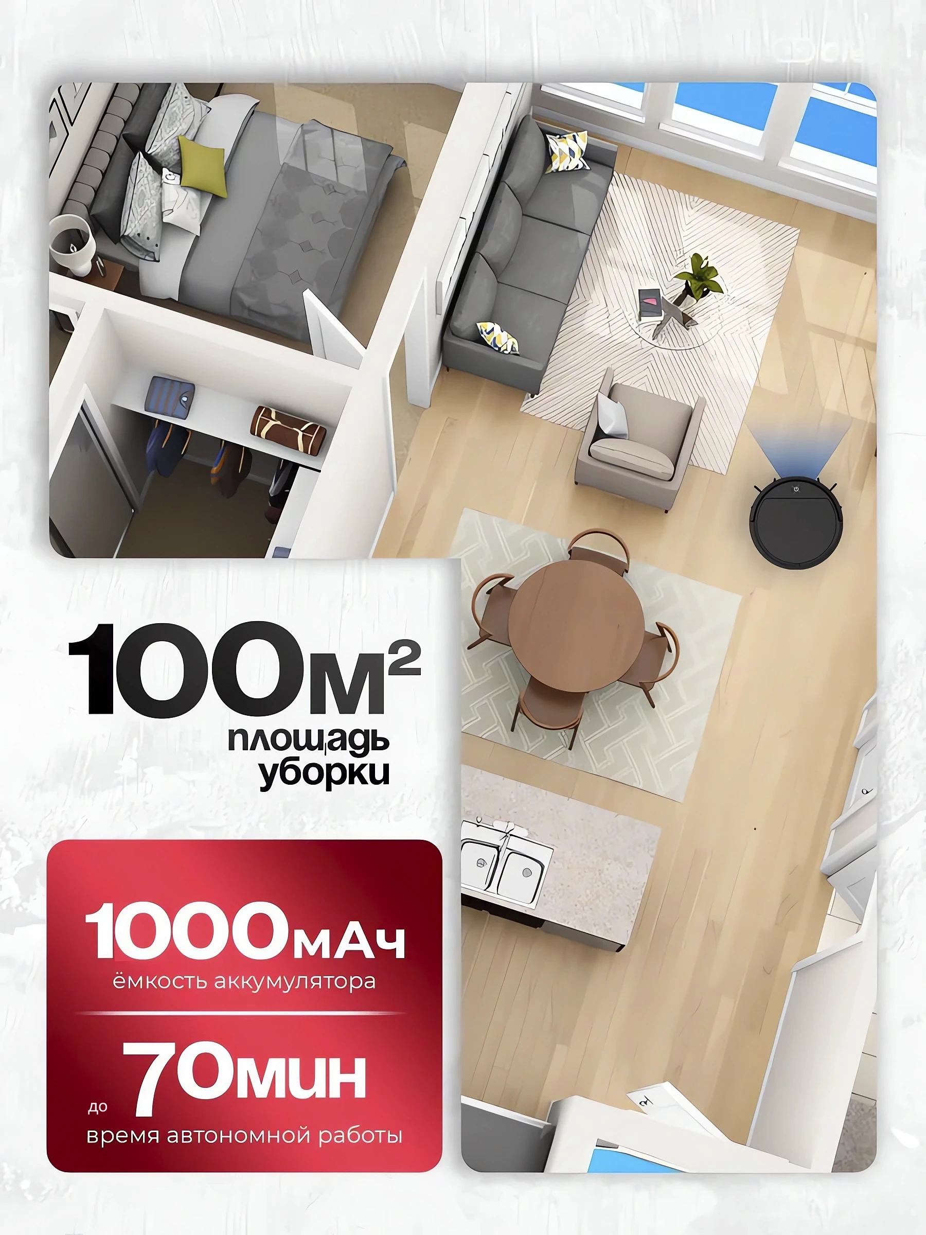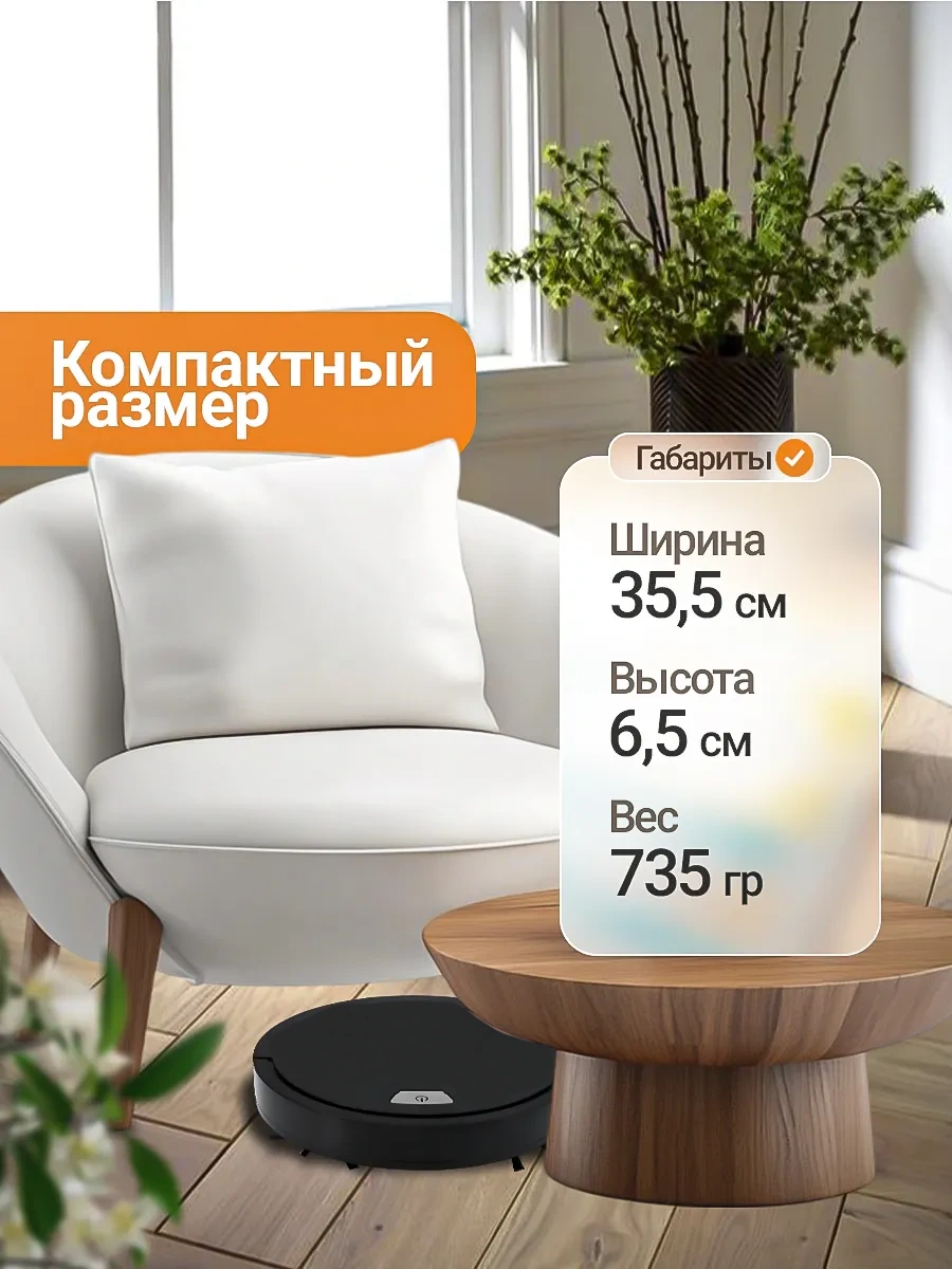 Роботы-пылесосы созданы для упрощения уборки дома, и стандартная комната может быть убрана за 5 минут: полы, ковры, кафель, кухня, спальня, под мебелью - все убирается за минуты, благодаря удобному размеру и комфортному весу.